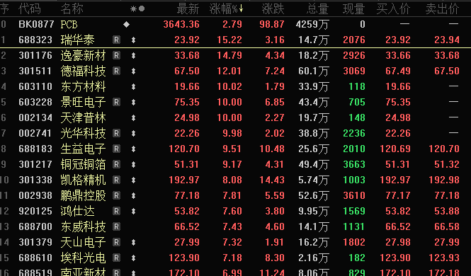PCB板块全线上涨