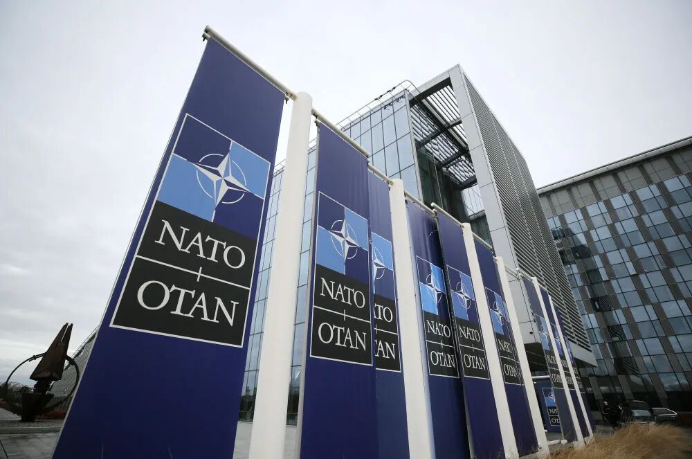 这是2024年2月15日在比利时布鲁塞尔拍摄的北约总部一角。新华社记者赵丁喆摄